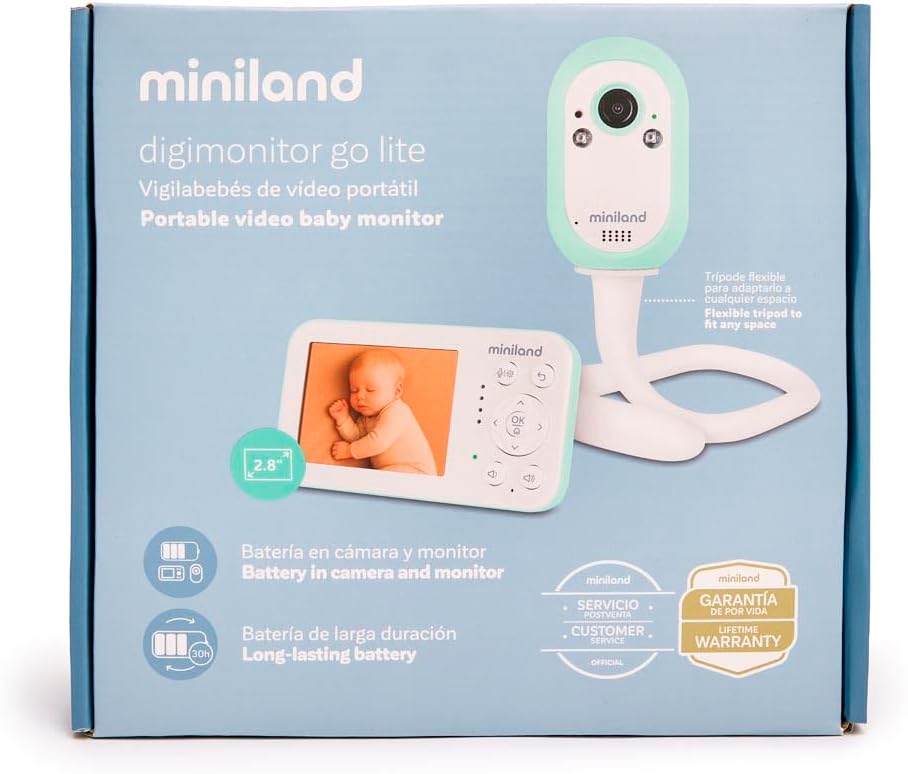 Miniland Digimonitor Go Lite Baby Monitor Portatile con Batteria 30h | Portata 300 m, Comunicazione Bidirezionale, VOX, Melodie e Luce Notturna