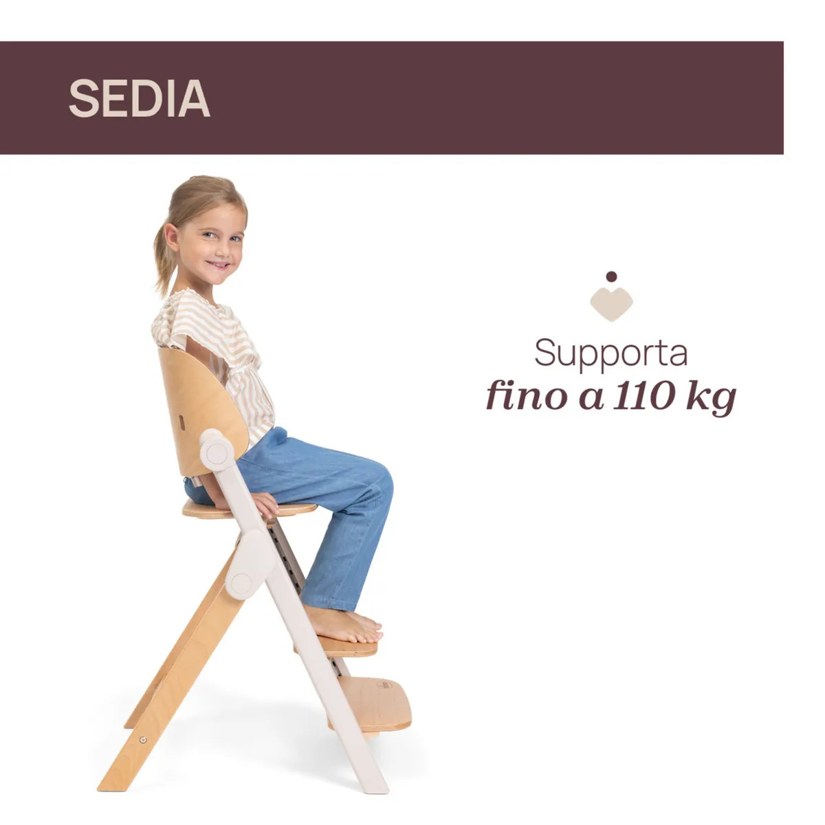 - Sedile e gradino regolabili in base alla crescita del bambino.